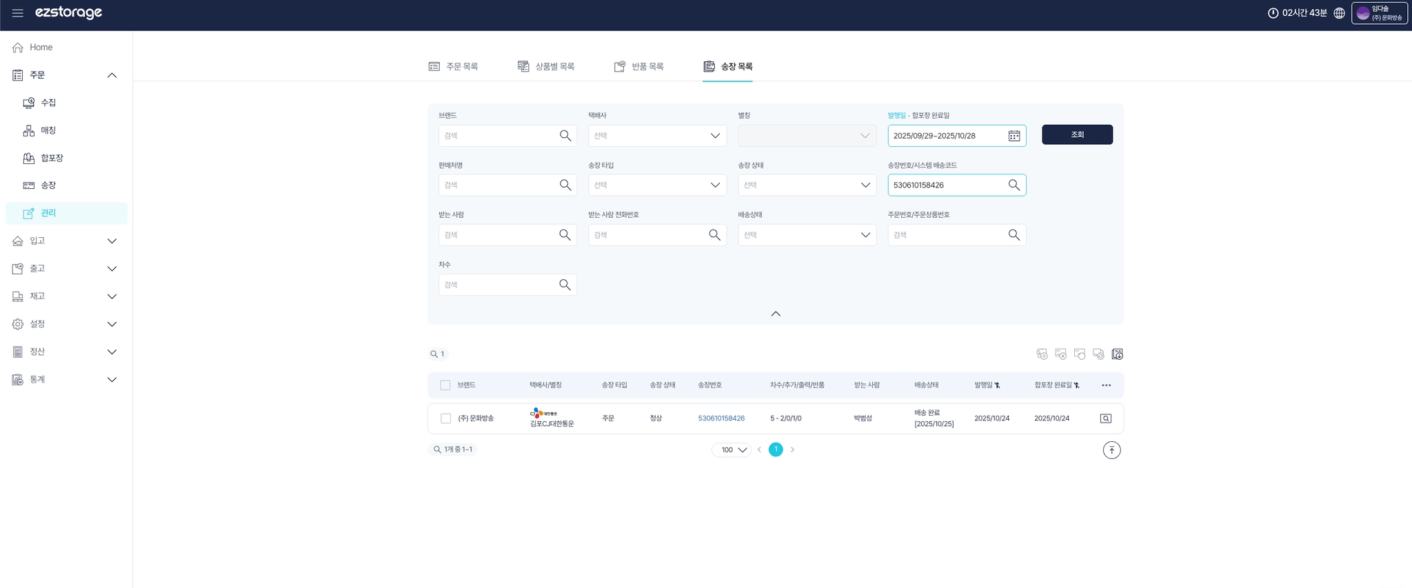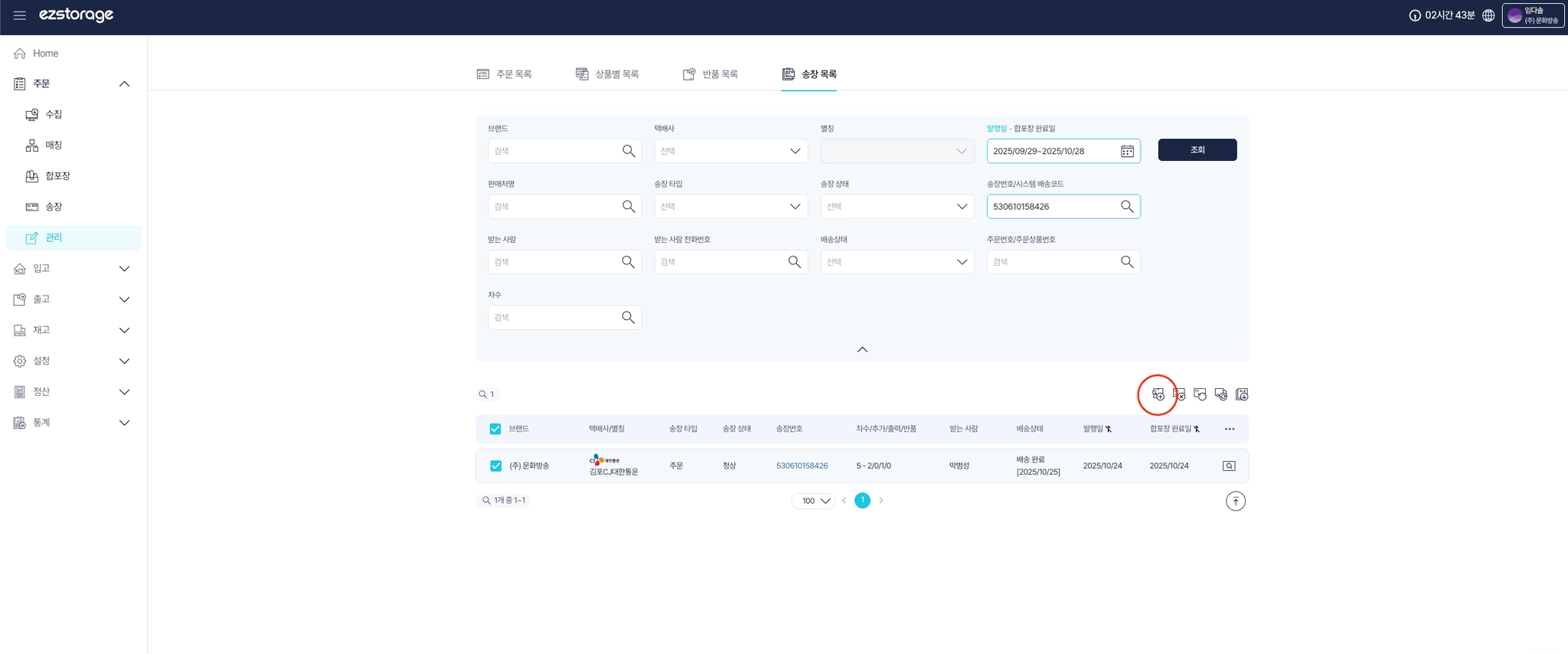 이지스토리지 접속 ⇒ 메뉴 ‘주문’ → 관리 → 송장목록