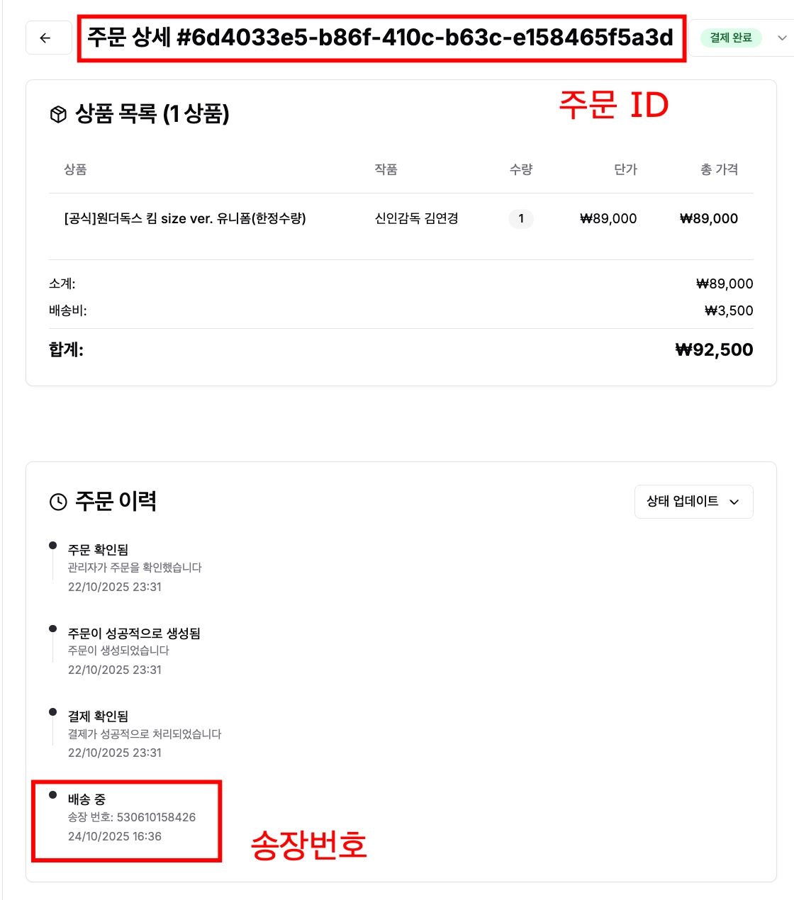 카카오톡 CS로 고객 반품 요청 ⇒ 주문ID( #6d4033e5-b86f-410c-b63c-e158465f5a3d) 수집 필수