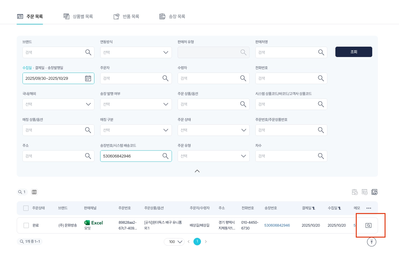 합포장(다건 중 한 건만)인 경우 조회 ⇒ 개별 건 클릭