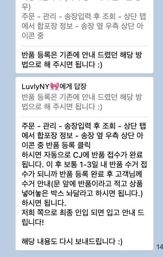카카오톡 CS로 고객 교환 요청